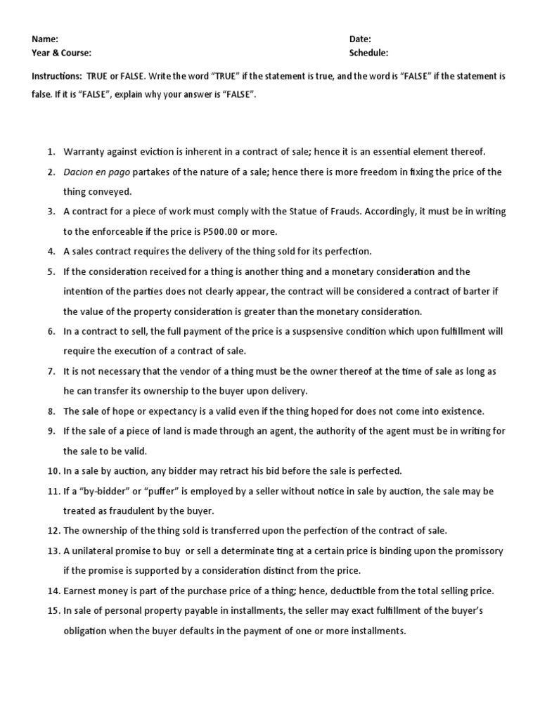 Sale Law Sale A Contract Where A One Obligates Himself To Transfer The Ownership Of Amp To Studocu